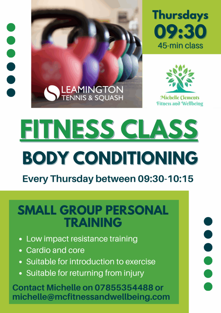 Thursday | Body Conditioning (lower intensity) | 9.30-10.15am | Weekly |